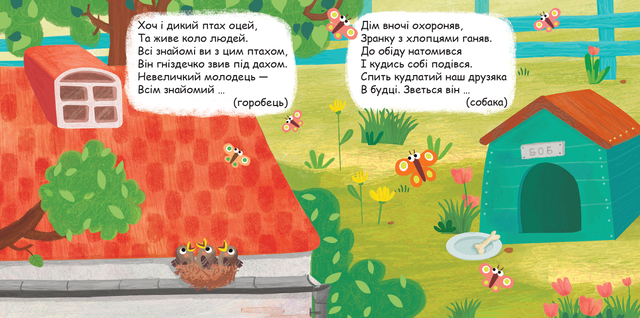 У цій книжці багато хто сховався: свійські тварини, птахи тощо. Про кожного написано і кожного можна побачити, якщо, читаючи, відкрити схованку-малюнок. До серії «Книжка-схованка» входять книжки, що містять цікаві розвивальні загадки. Відгадка «ховається» на висувному малюнку. Розглядаючи малюнки, ставте дитині запитання про зображене, про його колір та розмір, характерні особливості зображеного. Книжки серії покликані розвинути в дитини образне мислення, логіку, увагу та усне мовлення та можуть бути використані як посібники з ознайомлення з довкіллям.