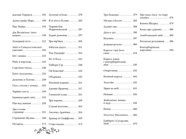 Відважний Джек знову перехитрить велетня, хитромудрий Том-Тіт-Тот зачарує читачів своєю загадковістю, а підступний пан Фокс змусить здригнутися від його містичної таємниці. Казковий світ сповнений чудес: бобові стебла тягнуться до неба, звичайні дівчата перетворюються на принцес, а мудрість і кмітливість завжди перемагають зло.