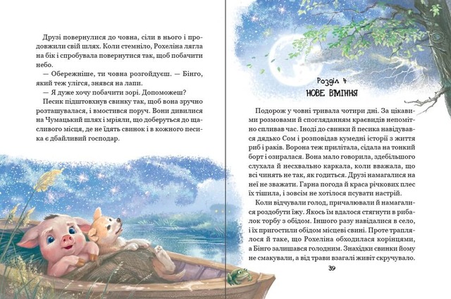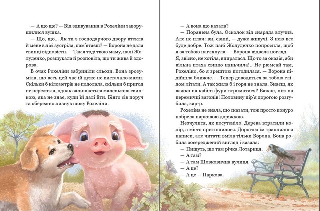 Казкова повість «Рохеліна Жолуденко та Бінго» — це історія свинки, яка через війну мусила покинути рідну ферму. На її шляху буде безліч цікавих і небезпечних пригод, а головне — зустріч зі справжнім другом, песиком на прізвисько Бінго. Рохеліні доведеться боротися за своє майбутнє, вчитися жити на новому місці й віднайти своє призначення. Це добра й весела історія, що подарує дітлахам години захопливого читання і нікого не залишить байдужим. Для молодшого і середнього шкільного віку.