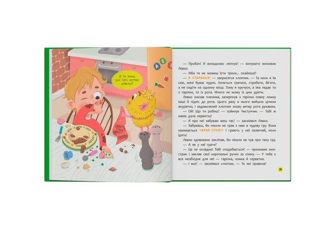 Ця історія — про охайність, відповідальність і турботу. Разом з веселим монстриком маленькі читачі навчаться простих, але важливих щоденних звичок, завдяки яким легко завжди виглядати охайним і підтримувати порядок навколо.