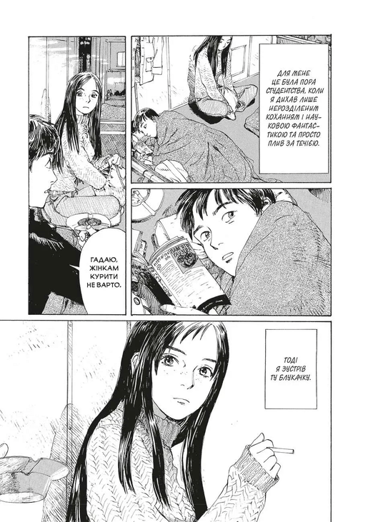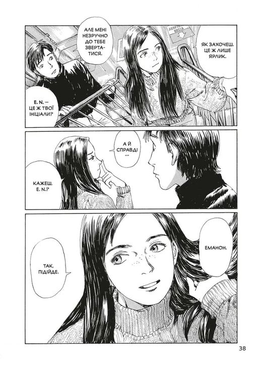 Довге волосся, светр грубого вʼязання та джинси. Очі такі глибокі, наче от-от затягнуть у безодню. А ще цигарки. На торбі вишиті ініціали E. N. — Еманон. На перший погляд, звичайнісінька дівчина, але всередині вона ховає спогади про Землю від самого зародження життя.