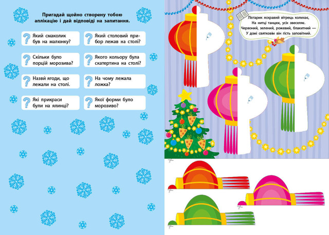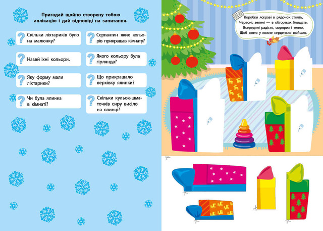 Серія «Зимові аплікації» створена для розвитку творчих здібностей і дрібної моторики маленьких непосидючок. У кожній книжці на малюків чекають святкові зимові ілюстрації, зображення на яких потрібно доклеїти, а ще — віршики й загадки, цікаві питання і наліпки. Книжки серії розвинуть логічне мислення, потренують пам’ять та увагу, виховають посидючість, організують цікаве дозвілля і сформують бажання створювати подарунки рідним і близьким своїми руками.