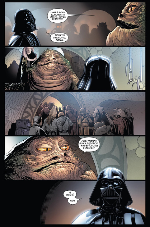 Відколи Дарт Вейдер вперше з’явився на екрані, він став одним з найзнаменитіших лиходіїв популярної культури. Тепер вирушайте разом із ним одразу після подій Нової надії (і сторінок його власної серії) у нову подорож, яка покаже війну Імперії проти повстанців з іншого боку! До кого звернеться темний лорд, коли потребує допомоги? У гонитві за особистою помстою повстанцям і розслідуванням таємних задумів Імператора, Вейдер натрапляє на брухтарку зброї Афру і смертоносних бойових дроїдів, а також повертається на Геонозис, аби зібрати армію. Але деякі могутні люди не хочуть, аби він довідався правду! Зіркові гості випуску – Джабба Гатт, Боба Фетт та інші!