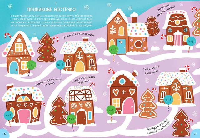 Книга містить 80 сторінок із захопливими завданнями, які дитина виконуватиме упродовж усіх різдвяно-новорічних свят. Водночас отримає нові знання, розвиватиме логіку, увагу, дрібну моторику й формуватиме художній смак. Приємне та корисне доповнення — 126 наліпок.