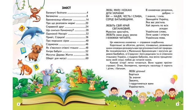 Серед героїв — Бегемотик із Кенії, який мріє стати великим і сильним; Маленький броненосець, що долає свій страх; Зайчик і Лисичка, котрі вчаться розуміти, хто справжній друг; струмочок, який не здається навіть під асфальтом; мудра бабуся, яка знає, що казки — найкращі ліки для розуму й серця.