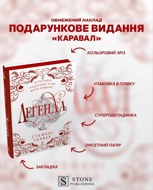Видання в твердій елегантній палітурці. Зверху — суперобкладинка з авторським дизайном (як на офіційному сайті). Всередині — білий офсетний папір високої якості, червоний зріз сторінок по всьому периметру, кольоровий форзац та яскрава червона закладка.