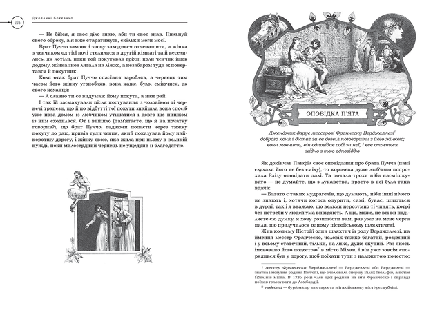 Цей знаковий переклад флорентійського шедевра доби Пізнього Середньовіччя, здійснений найславнішим українським перекладачем Миколою Лукашем, побачив світ 1964 р. у видавництві «Дніпро». «Свого часу Боккаччо писав живою флорентійською мовою. Це правда, але нащадки флорентійців — сучасні італійці, бачать, наскільки ця мова застаріла, — казав М. Лукаш. — А тому відчуття такої застарілості, на мою думку, необхідно створити і в перекладі». «Коли для сучасного італійського читача існує досить істотна відмінність між мовою Боккаччо і мовою першого-ліпшого нинішнього новеліста, то чому ж у перекладі ця дистанція повинна стиратись? — писав інший відомий перекладач Григорій Кочур.» Лукашів «Декамерон» став не тільки найвищим здобутком самого перекладача, а, за словами Л. Череватенка, «то була воістину «зоряна година» і самого Лукаша, й української літератури загалом».