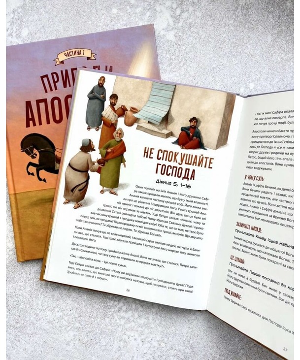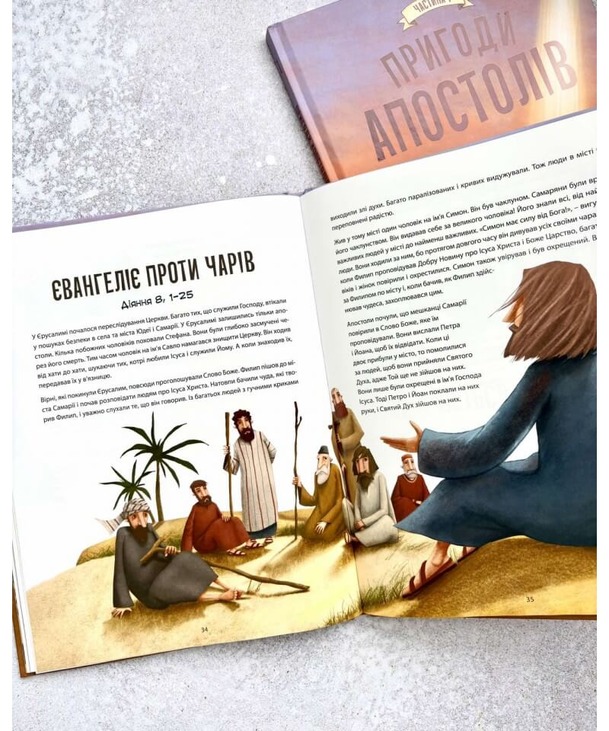 Перша частина «Пригод апостолів» – це чудовий переказ Діянь апостолів від 1 до 14 глави, доповнений поясненнями, які допоможуть дітям краще зрозуміти те, про що вони читають.