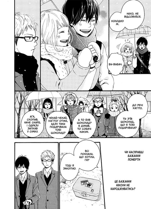 Коли листи з майбутнього отримують Хаґіта, Такако й Адзуса, вони вирішують діяти: зробити життя Какеру світлішим, подарувати сміх, підтримку й тепло, яких йому так бракувало. Разом вони оберігають його від знущань, підштовхують до здійснення маленьких мрій і намагаються повернути віру в себе, при цьому зазираючи глибше в його внутрішній світ.