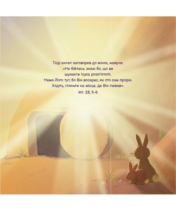 Радість Воскресіння Христового всеохопна. Така, що хочеться закружляти у танку – разом із персонажами цієї книжки. Тільки погляньте на цих милих і веселих звірят – вони так щиро діляться з усім світом Доброю Новиною: Ісус живий!